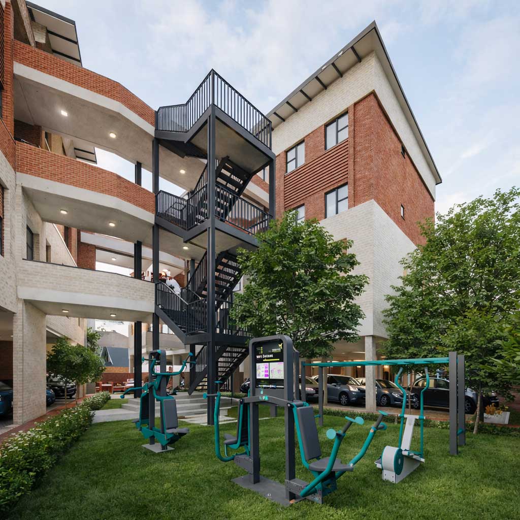 An outdoor training area offers residents a convenient and energising space to stay active in the fresh air.